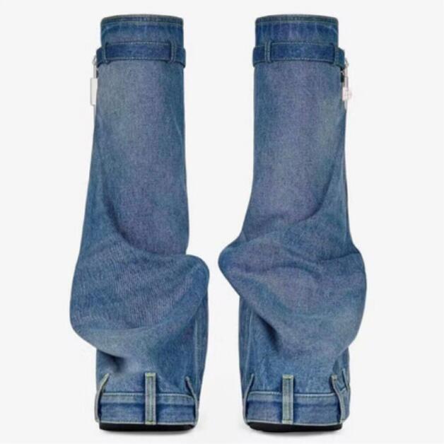 Shark Round Toe Platform Cowboy Boots Skirt Shoes
