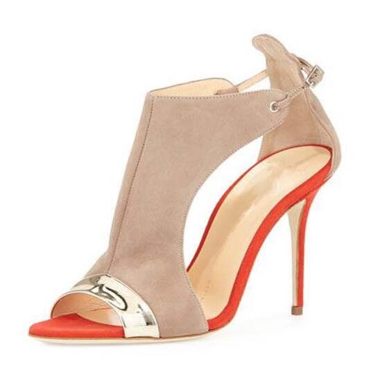 Patchwork Suede Stiletto Heel Peep-toe Ankle Strap High Heels Sandals S-0071