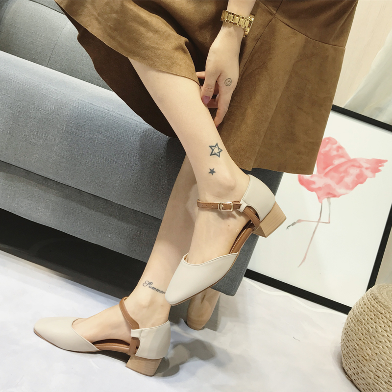 Mary Jane Shoes Retro Word Buckle Head Sandals Female Summer New With The Thick With Shoes Shoes Students