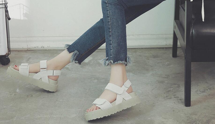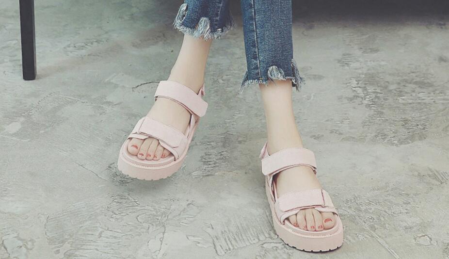 Wild Muffled Sandals Female Summer Flat Bottom Students Casual Magic Paste Women Shoes Tide
