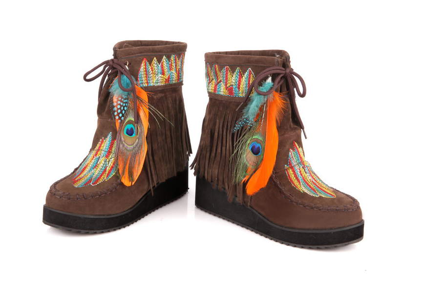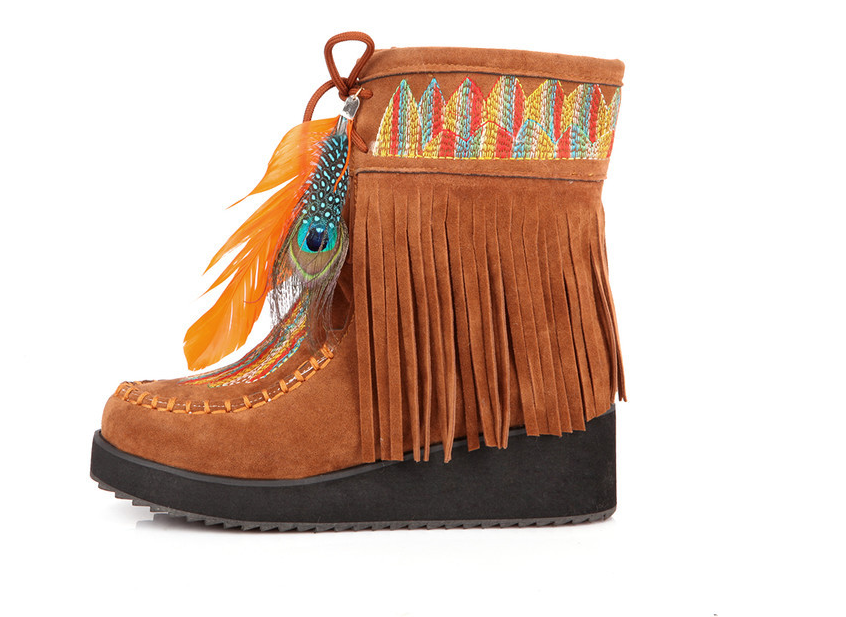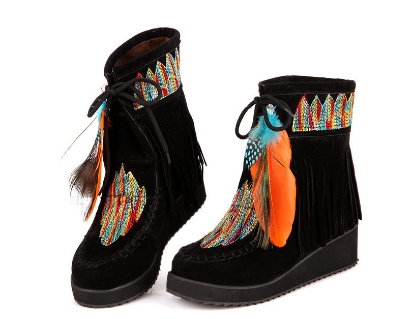 Ethnic tassel boots with feather embroidery boots cs-0021