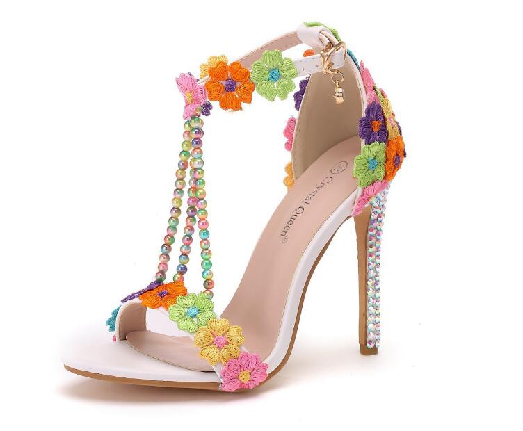One word buckle with fish mouth and open toe beaded sexy high heel women's shoes