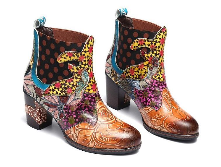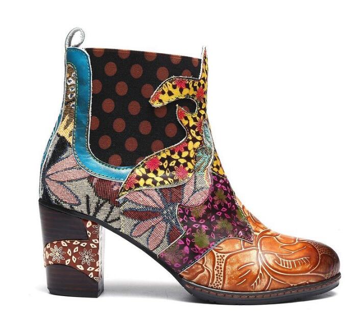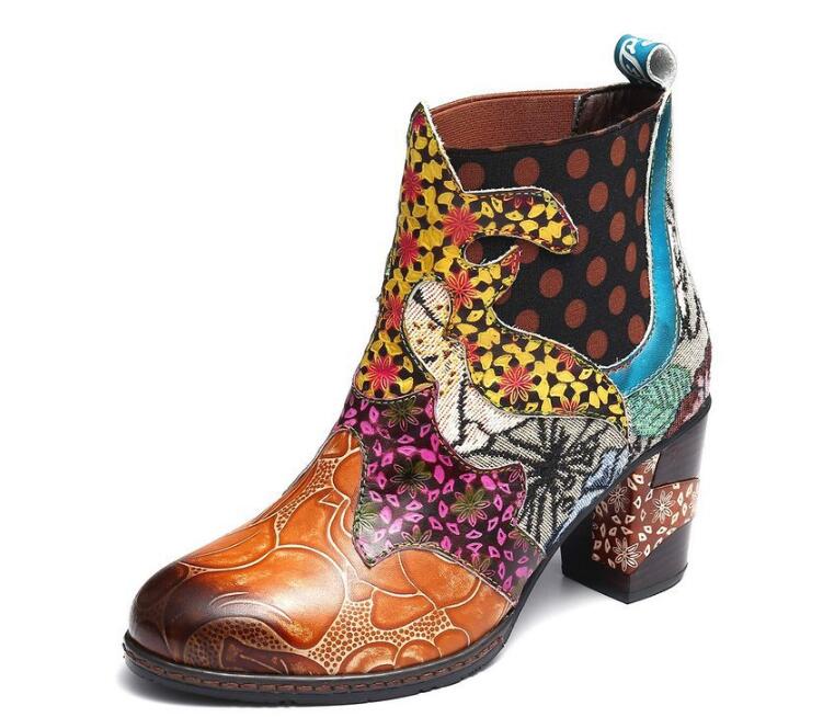 The celebrity style fashion colorful stitching retro thick-heel Martin boots