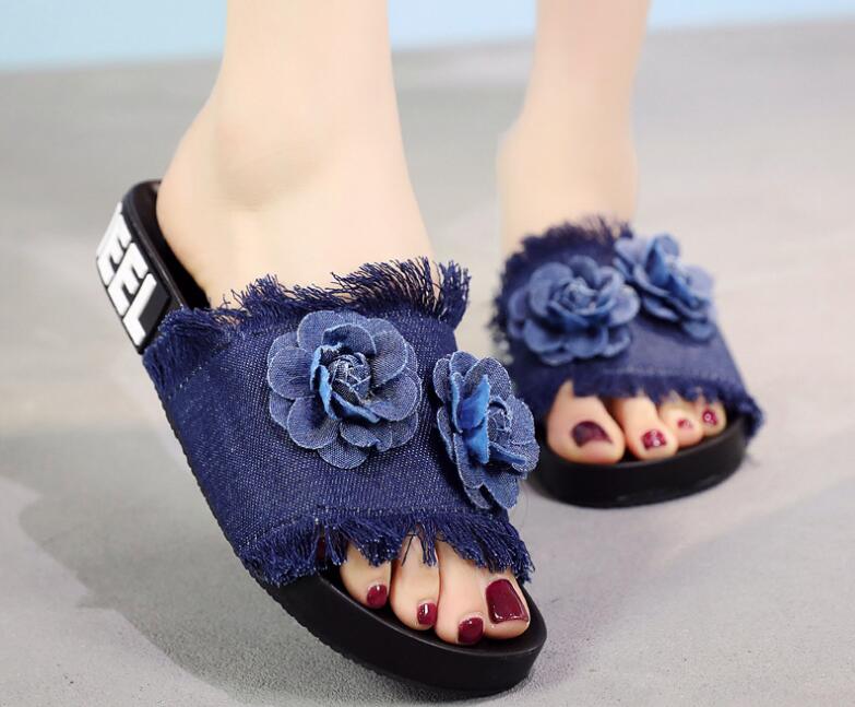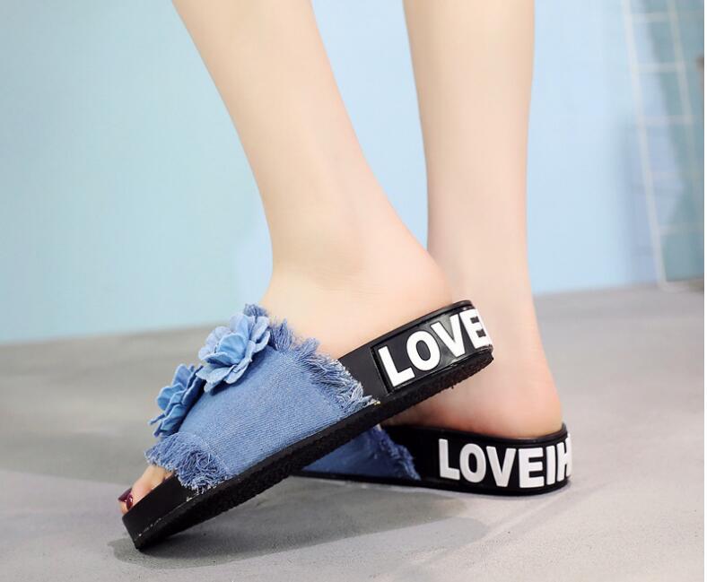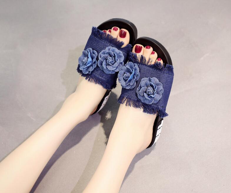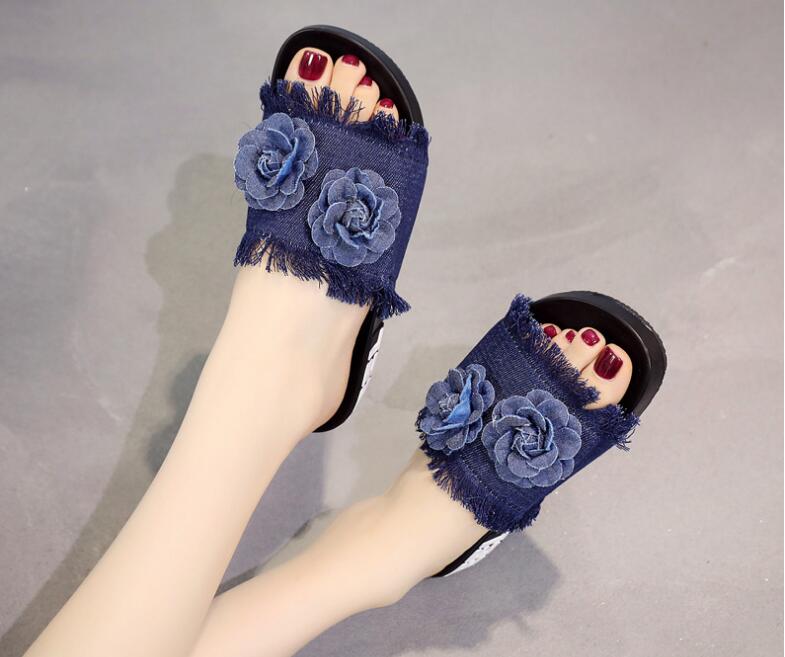Thick-soled flip-flops cowgirl flower casual outerwear sandals and slippers