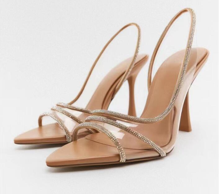 New crystal pointy rhinestone transparent high-heeled women's shoes